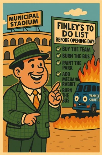 To drive home the point, Finley staged one of the most unforgettable publicity stunts in baseball history. On a cold January afternoon at Municipal Stadium, he wheeled out an old school bus emblazoned with the words “Shuttle Bus to Yankee Stadium.”