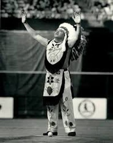 The role’s third and longest-running performer, Levi Walker Jr., an Algonquin (Chippewa-Ottawa), took over in 1969. Born in Charlevoix, Michigan, in 1941, Walker was an insurance agent by day and, by night, a showman in buckskins and moccasins. He made his own costumes and set up an air-conditioned tepee in the left-field bleachers of Atlanta–Fulton County Stadium — a small personal clubhouse that he decorated and maintained himself.