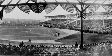 No city embraced the new circuit more than Baltimore. As one reporter quipped, the excitement stretched “from the Mayor down to the muddiest-looking street urchin.” Another paper marveled at “leather-lunged fans, perched in every conceivable part of the enclosure, with several thousand more on the outside looking in from tree and house tops and even telegraph poles.” It was, as the Sun declared, “a mighty big send-off for the Federal League.”