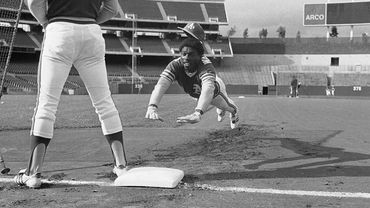 Herb Washington on the field and the track. We also see Charlie O posing with manager Alvin Dark.